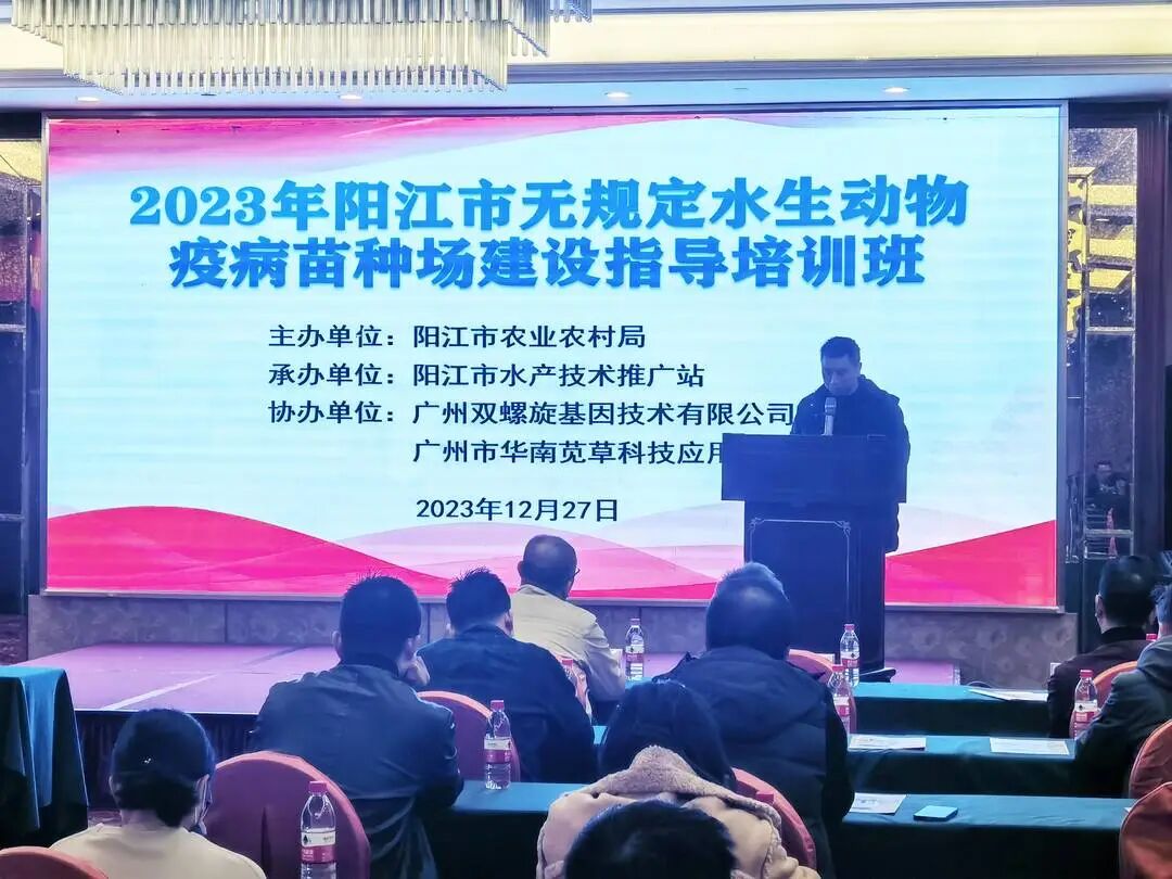 為貫徹落實(shí)農(nóng)業(yè)農(nóng)村部發(fā)布的《無(wú)規(guī)定水生動(dòng)物疫病苗種場(chǎng)評(píng)估管理辦法》,加強(qiáng)無(wú)規(guī)定水生動(dòng)物疫病苗種場(chǎng)建設(shè),推進(jìn)陽(yáng)江市省級(jí)水產(chǎn)良種場(chǎng)建設(shè)和水產(chǎn)綠色健康養(yǎng)殖發(fā)展,陽(yáng)江市農(nóng)業(yè)農(nóng)村局于2023年12月27日召開(kāi)陽(yáng)江市無(wú)規(guī)定水生動(dòng)物疫病苗種場(chǎng)建設(shè)指導(dǎo)培訓(xùn)班暨水產(chǎn)綠色健康養(yǎng)殖“五大行動(dòng)"授牌活動(dòng),廣東省動(dòng)物疫病預(yù)防控制中心一級(jí)調(diào)研員馬亞洲、曾慶雄科長(zhǎng),林華劍科長(zhǎng)、陽(yáng)江市農(nóng)業(yè)農(nóng)村局總工程師戴了疑,陽(yáng)江市水產(chǎn)技術(shù)推廣站站長(zhǎng)陳健,仲愷農(nóng)業(yè)工程學(xué)院客座教授劉貴華教授,太平洋保險(xiǎn)公司陽(yáng)江分公司總經(jīng)理張湛哲及市縣(區(qū))漁業(yè)主管部門(mén)、水產(chǎn)技術(shù)推廣部門(mén)(水生動(dòng)物防疫檢疫機(jī)構(gòu))負(fù)責(zé)同志均出席本次培訓(xùn)班。